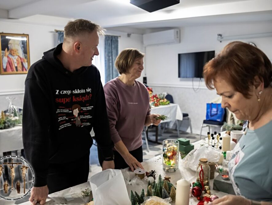 Jak co roku w naszej Parafii organizowane są warsztaty świąteczne, podczas których dzieci, młodzież i dorośli wykonują piękne dekoracje świąteczne. W czasie warsztatów powstały stroiki, wieńce na drzwi, choinki, aniołki, świeczniki i wiele innych rękodzieł. Czas warsztatów to czas wspólnej integracji i dobrej zabawy. Można rzec, że czuć magię nadchodzących świąt.