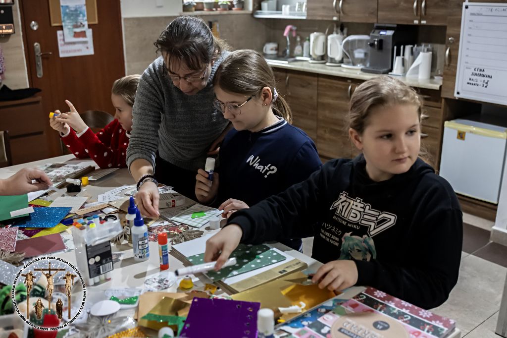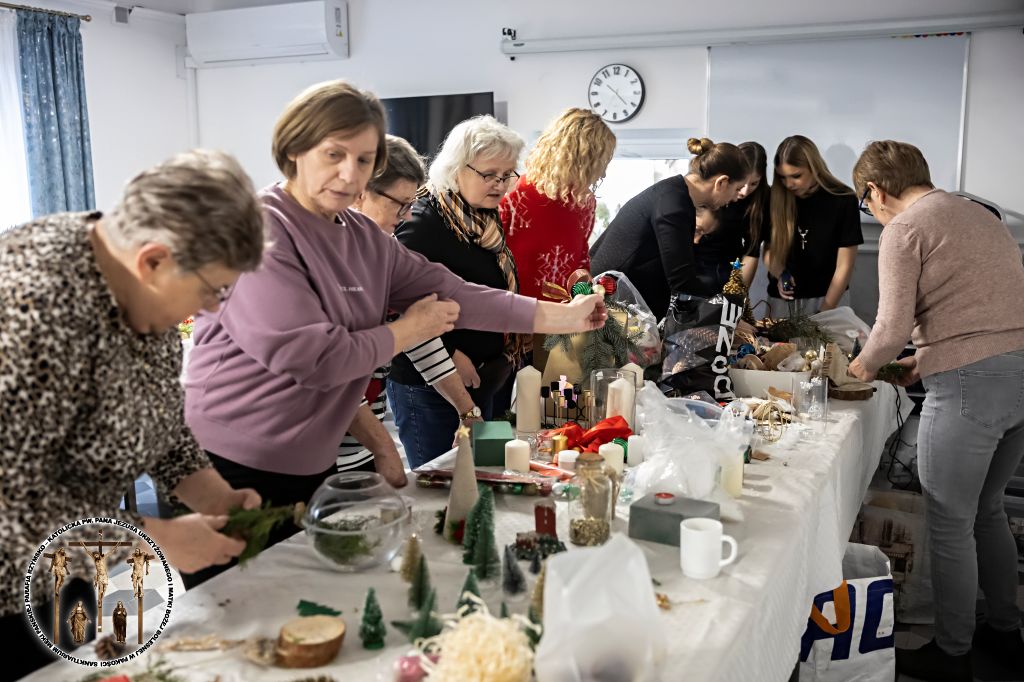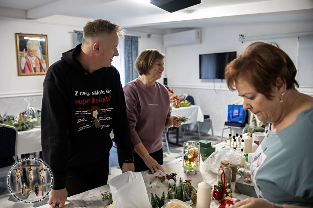 Jak co roku w naszej Parafii organizowane są warsztaty świąteczne, podczas których dzieci, młodzież i dorośli wykonują piękne dekoracje świąteczne. W czasie warsztatów powstały stroiki, wieńce na drzwi, choinki, aniołki, świeczniki i wiele innych rękodzieł. Czas warsztatów to czas wspólnej integracji i dobrej zabawy. Można rzec, że czuć magię nadchodzących świąt.