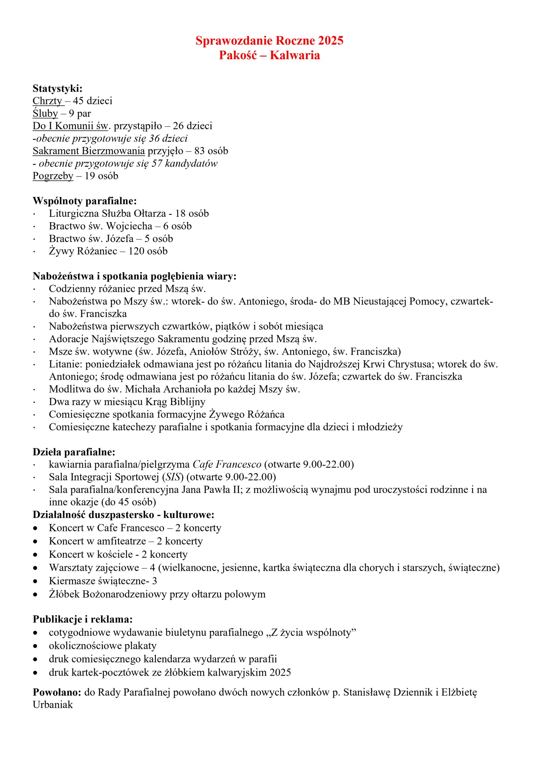 Biuletyn parafialny nr 175, Sprawozdanie Roczne 2025r.