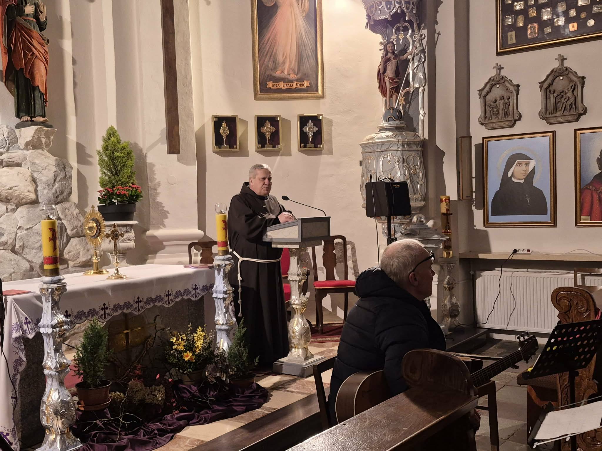 O. Lesław przywitał artystów oraz wszystkich zgromadzonych, życząc, aby koncert stał się dla nas duchowym przygotowaniem do nadchodzących Świąt Zmartwychwstania Pańskiego.