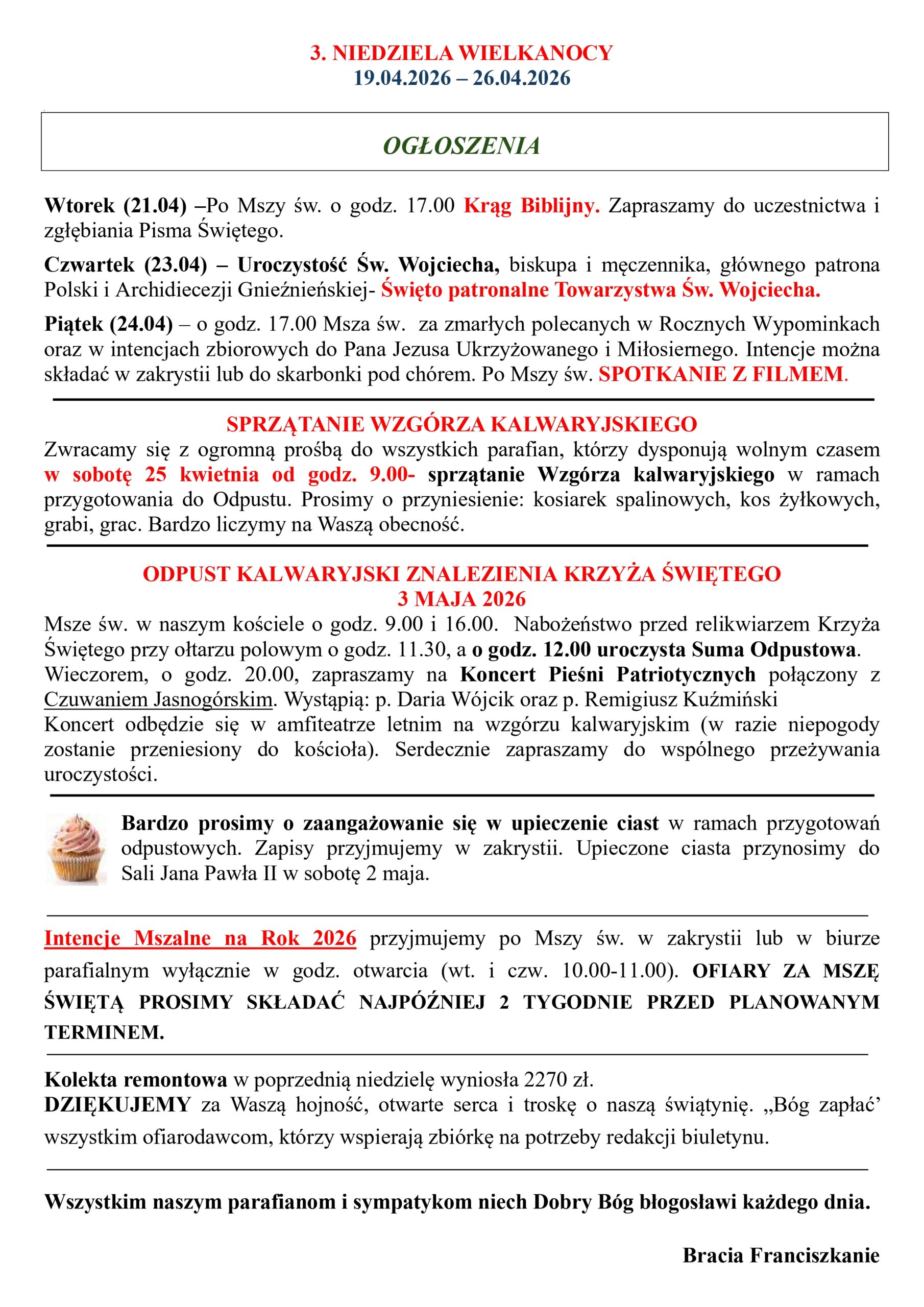 III NIEDZIELA WIELKANOCY 19.04. - 26.04.2026r.